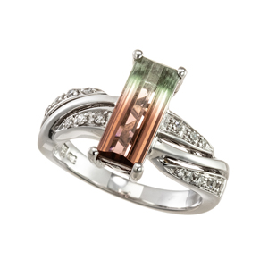 【11号】K18WG パーティーカラートルマリン ダイヤモンド リング