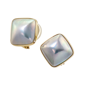K18YG 奄美大島産 マベパール スクエア ソフトクリップイヤリング P 約14.0×14.0mm