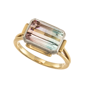 K18YG/Pt900 バイカラートルマリン リング 4.35ct #13 ピンク~ブルー色