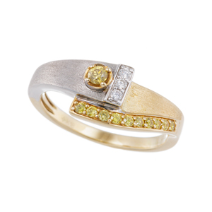 【15号】K18WG/YG ファンシーイエローダイヤモンド & ダイヤ リング YD 0.15ct D 0.05ct