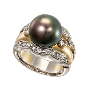 TASAKI K18YG/PT900 黒蝶真珠 ダイヤモンド リング P 約11.5mm D 0.53ct