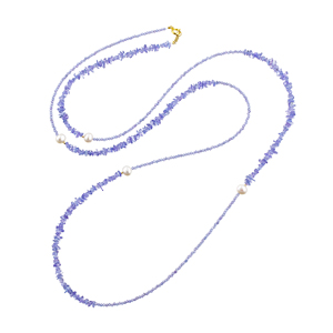 SV/K18YG タンザナイト 淡水真珠 ロングネックレス TA 約90.00ct P 約6.0mm