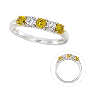 PT950/K18YG ファンシーヴィヴィッドイエローダイヤモンド & ダイヤ リング YD 約0.