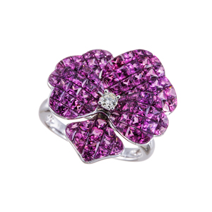 PT950 グレープガーネット ダイヤ パンジー ミステリーセッティング リング GA 約3.80ct D 約0.08ct