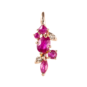 PT950 ザンビア産エメラルド スノーダイヤ ルビー Gem Frog シングルピアス EM 約0.08ct DS 約0.10ct RB 約0.02ct