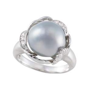 SV 天色(あまいろ) 白蝶真珠 ホワイトトパーズ リング P 約11.0mm TO 約0.06ct
