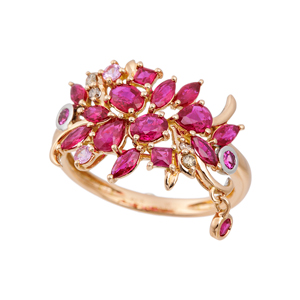 左から、K18YG ファンシーカラーストーン ピアス / K18YG ファンシーカラーストーン リング / K18YG マルチカラー プレシャスストーン リング / K18WG マルチカラー プレシャスストーン リング