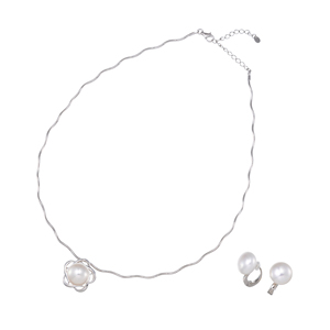 SV 淡水真珠 オメガネックレス & フェザータッチイヤリング 2点セット (N) P 約12.0m